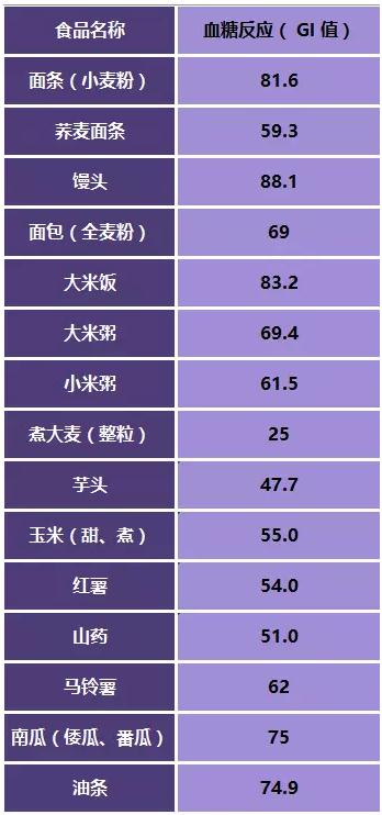 常見食物的血糖反應(yīng)